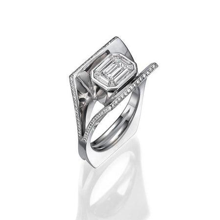 An Emerald shape diamonds Ring. engagment ring. Solitaire ring. 18k gold. Octava1513W