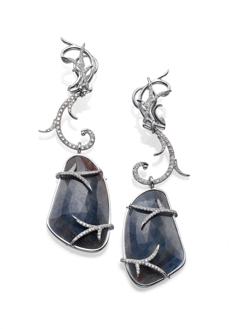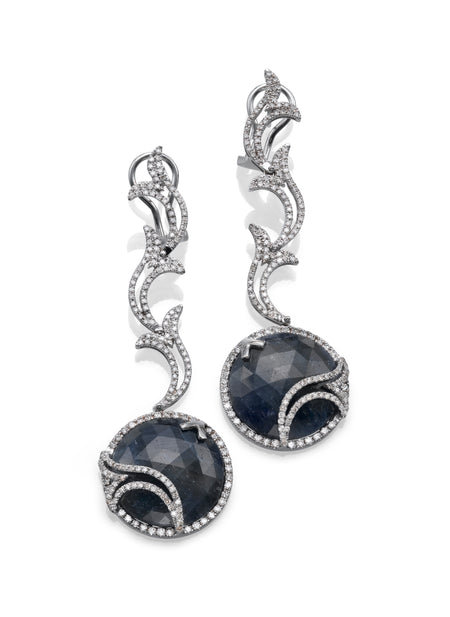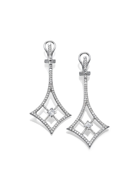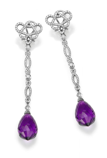 Classic Diamond Drop Earrings with Amethist and Briliants cut diamonds. 18K gold. 7007