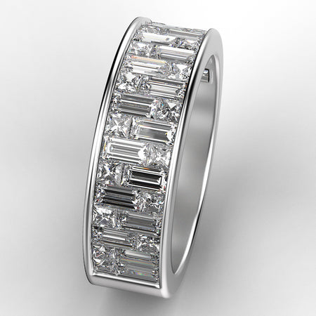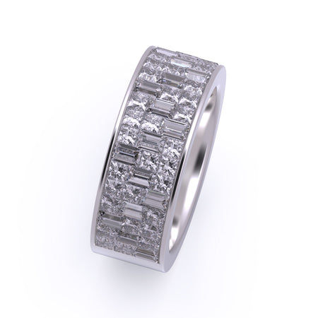 Baguewttes diamonds wedding ring. Diamonds Bridal band. Baguettes&Princess. 8014
