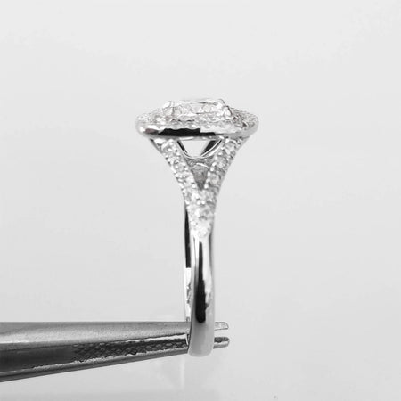 Solitaire Ring 1.0 ct Cushion cut Diamond and brilliants Diamonds. 18K white gold. 9067