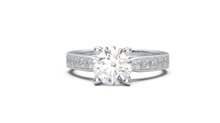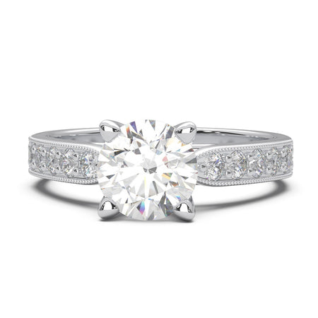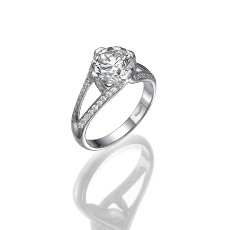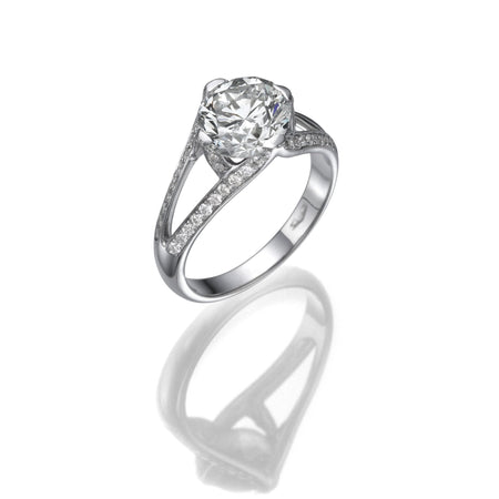 Solitaire Ring 1ct Round Diamond and brilliants Diamonds. 18K white gold. 9058