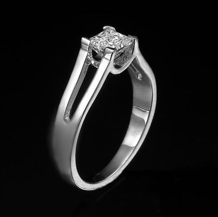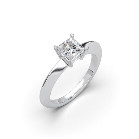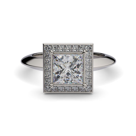 Solitaire Ring 1ct Princess cut Diamond with princess Halo. 18K gold. 9056