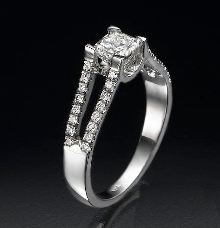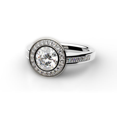 Solitaire Ring 0.75ct Round Diamond and brilliants Diamonds. 18K white gold. 9058