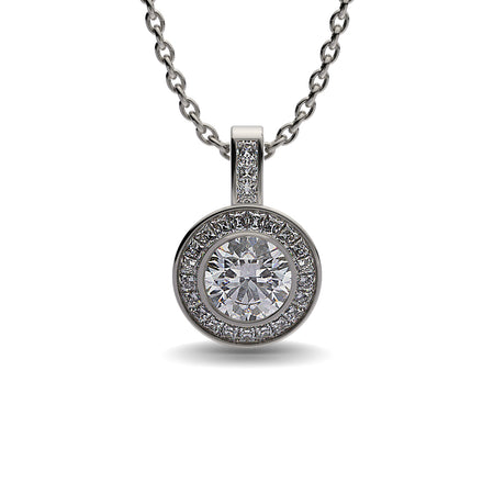 Solitaire Pendant Round Diamond Princess Diamonds Halo, 18K Gold. 9064