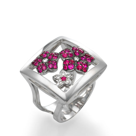 Diamonds Ring. Bouquet of Diamonds and Tsavorite ruby sapphire. LP1461
