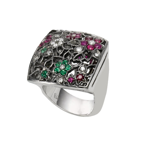 Diamonds and Gems Ring. 18K gold. Diamonds, Rubies and Tsavorite. Intima. LP 1707